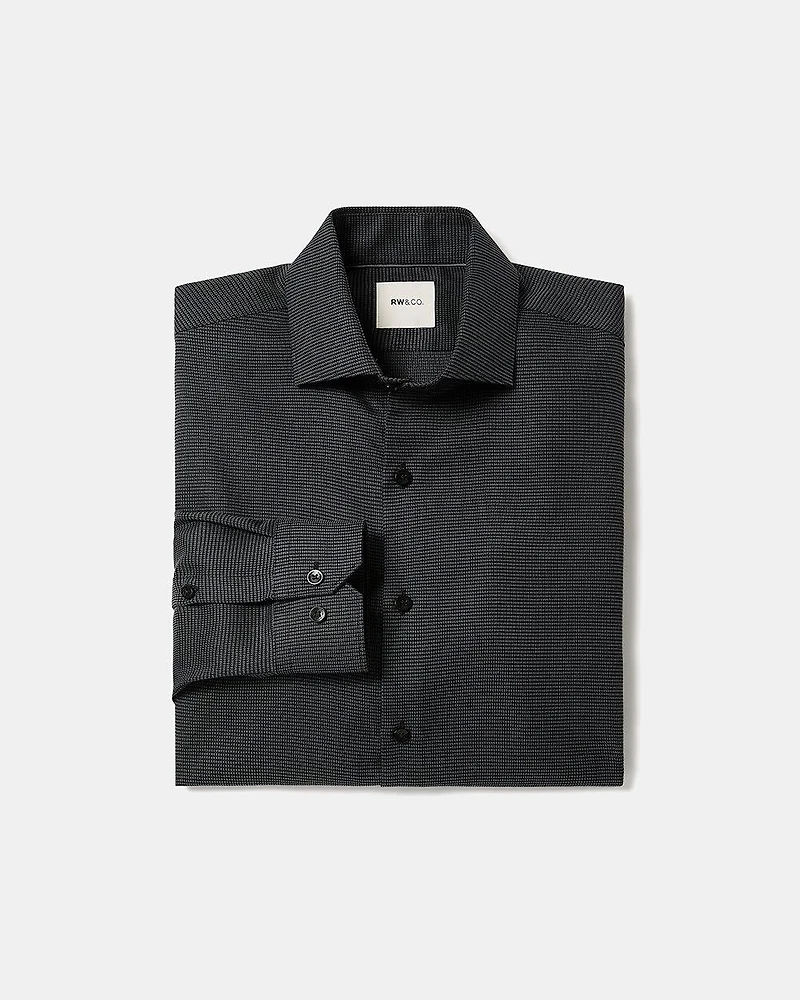 Chemise Habillée à Coupe Étroite en Dobby Micro Motif de Carrés