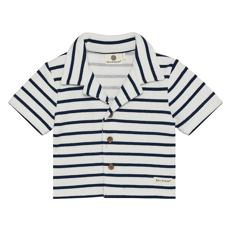 Chemise à manches courtes EN FANT. Cette chemise à col boutonné sur le devant est rayée. Composition : 90 % coton / 10 % polyester