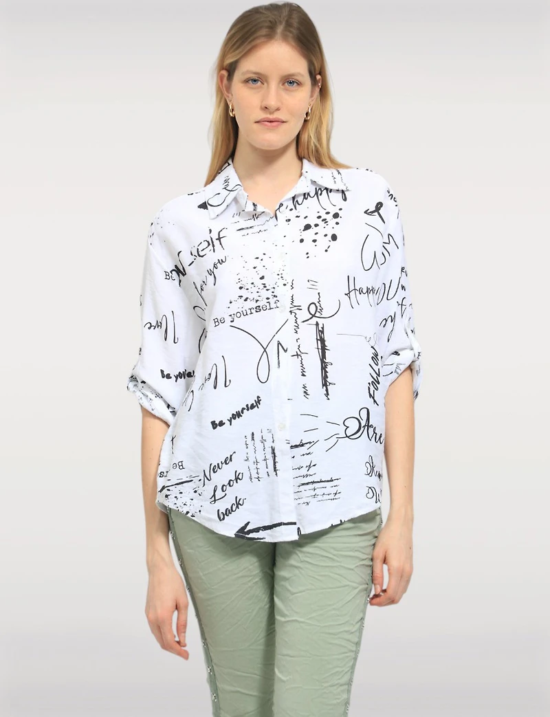 Chemisier Élégant à Boutons Asymétriques avec Imprimé Abstrait par Froccella
