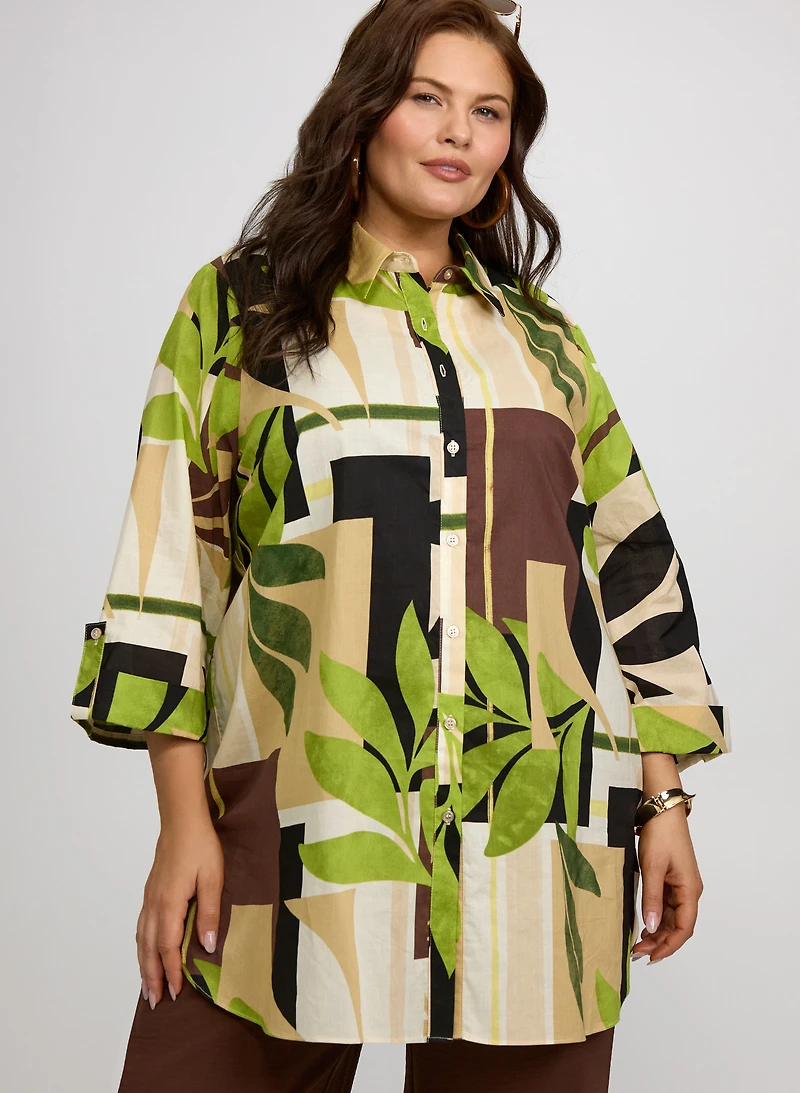 Chemisier en coton à feuillage