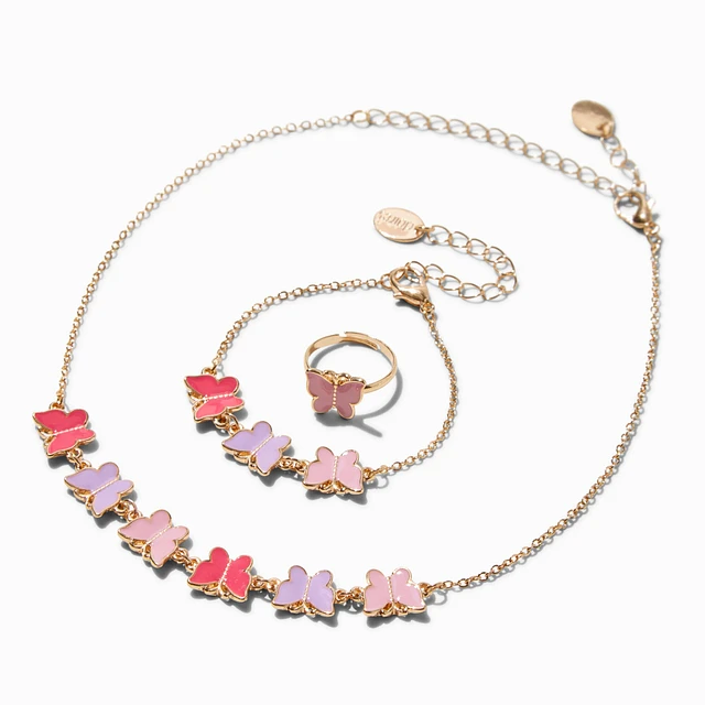 Claire's Club Gold-tone Connected Butterfly Jewelry Set - 3 Pack