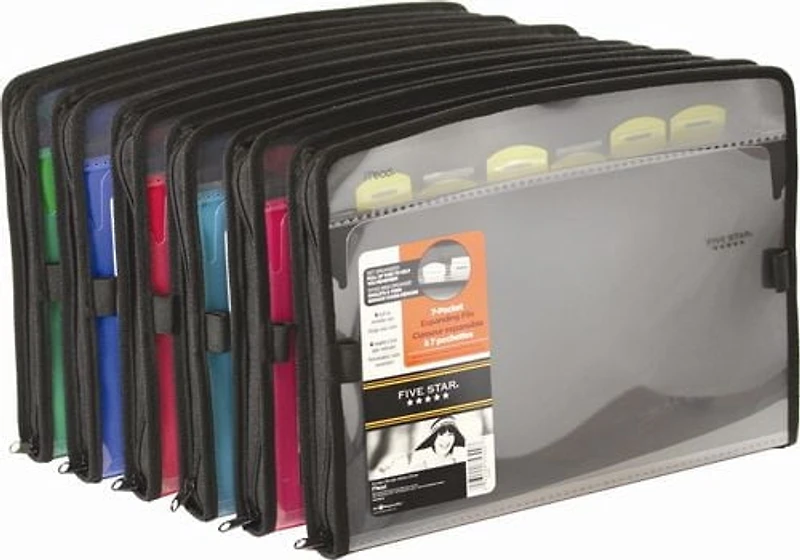 Les onglets de rappel à tirer brevetés aident les élèves à rester organisés et leur rappellent lorsque les devoirs sont dus. Le classeur expansible avec :7 pochettes, fermeture éclair, soufflets renforcés, 2 portestylos, la pochette avant transparente permet de la personnaliser. Vendus séparément. Expédié dans des couleurs choisis au hasard, selon la disponibilité.