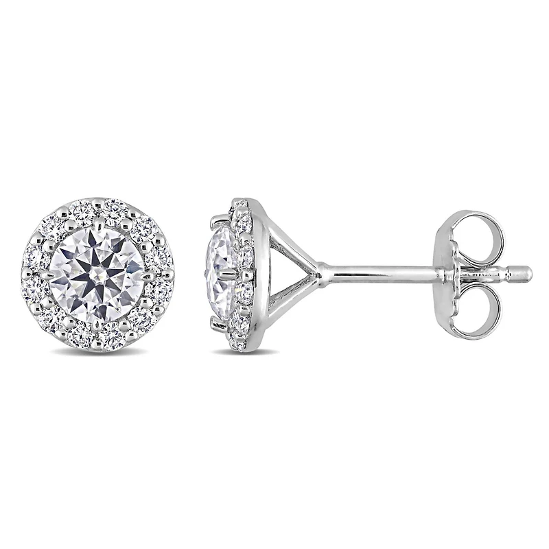 Clous d’oreilles à Auréoles Miabella avec 1-1/3 Carat PBT de Moissanite en Argent Sterling