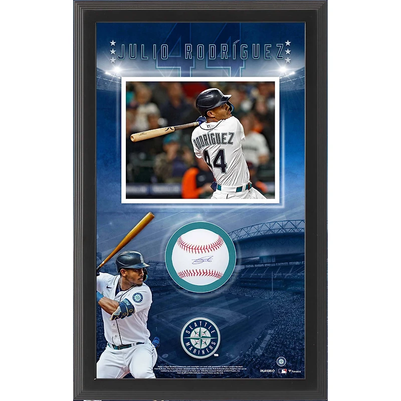 Collage de baseball encadré autographié par Julio Rodríguez des Mariners de Seattle