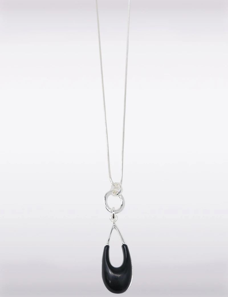 Collier Moderne Argenté avec Pendentif en Forme de Goutte en Pierre Noire