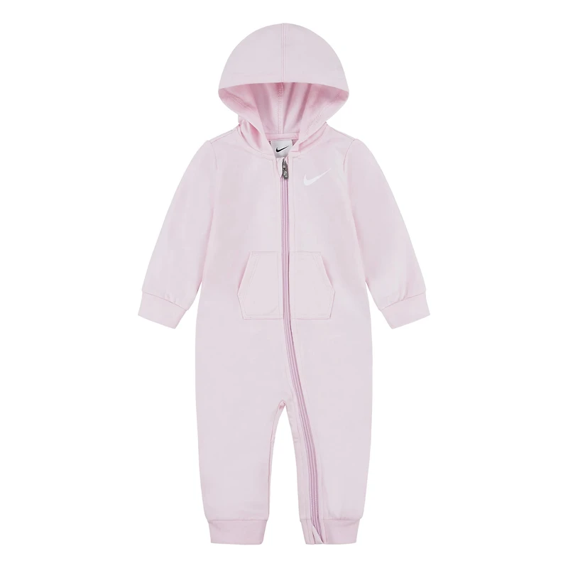 Gardez votre bébé bien au chaud dans cette grenouillère douce en tissu éponge, dotée d'une capuche et d'une poche kangourou. La fermeture éclair intégrale et les poignets côtelés assurent un habillage facile et de la chaleur. Ornée du logo Nike.
