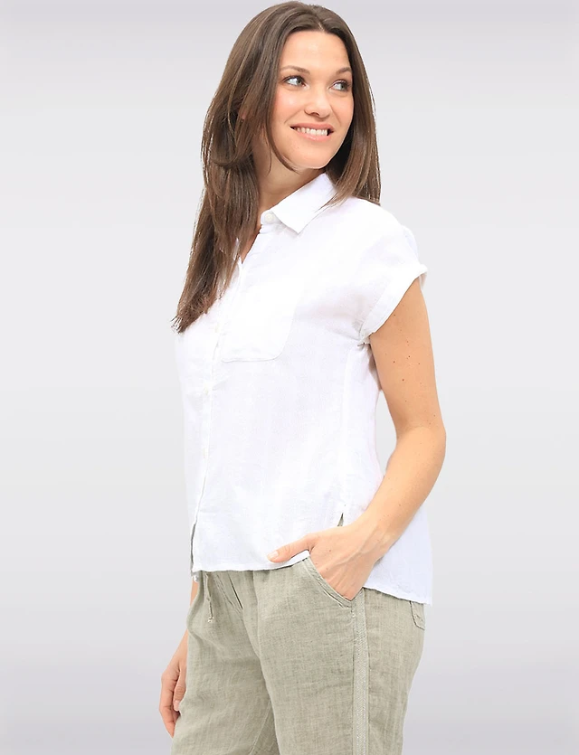 Cotton Button-Up Blouse with Shirt Collar Cuffed Sleeves & Chest Pocket by Dash