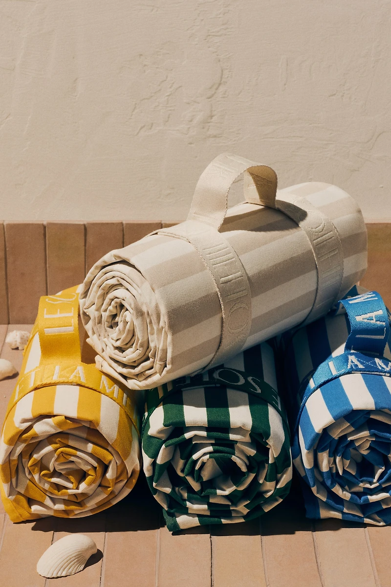 - Description: Beige clair/blanc, Le soleil et la mer, À rayures