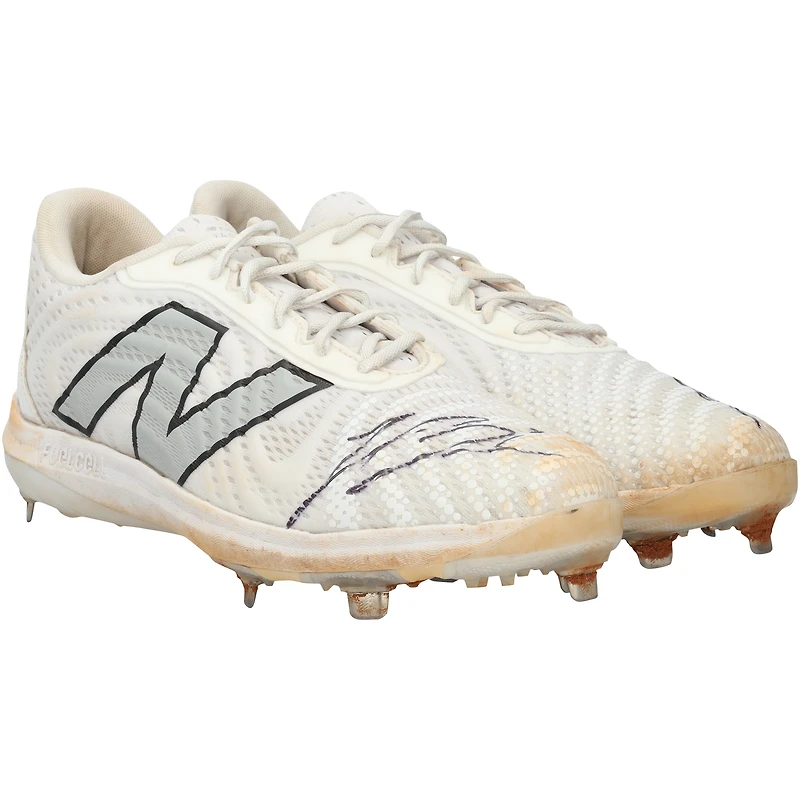 Crampons blancs New Balance autographiés et portés en match par Michael Harris II des Braves d'Atlanta lors de la saison 2024 de la MLB