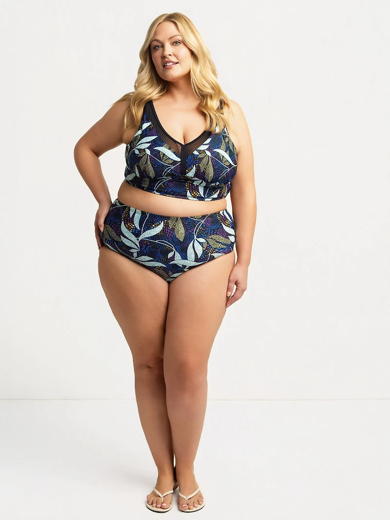 Culotte de maillot taille haute en textile extensible imprimé à motifs végétaux.