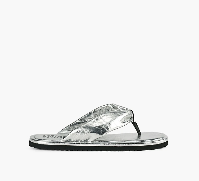 Si vous recherchez une version plus ludique de la tong traditionnelle, la sandale Daiquiri de Mimosa mérite toute votre attention. Délaissant les fines brides classiques au profit de brides rembourrées et volumineuses, cette paire repose sur une semelle plate confortable et coussinée, avant d’être sublimée par une finition métallisée accrocheuse.
