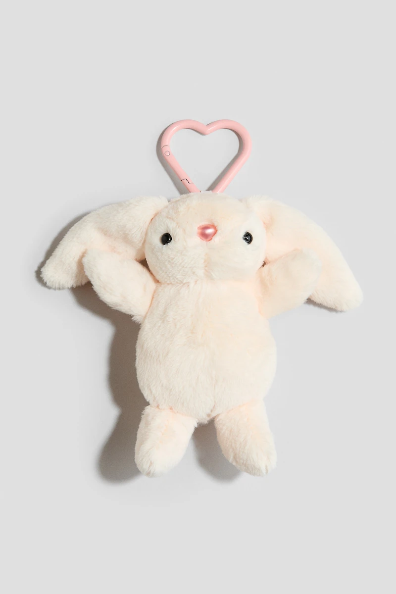 Décoration de sac avec grande peluche matelassée et mousqueton en métal.