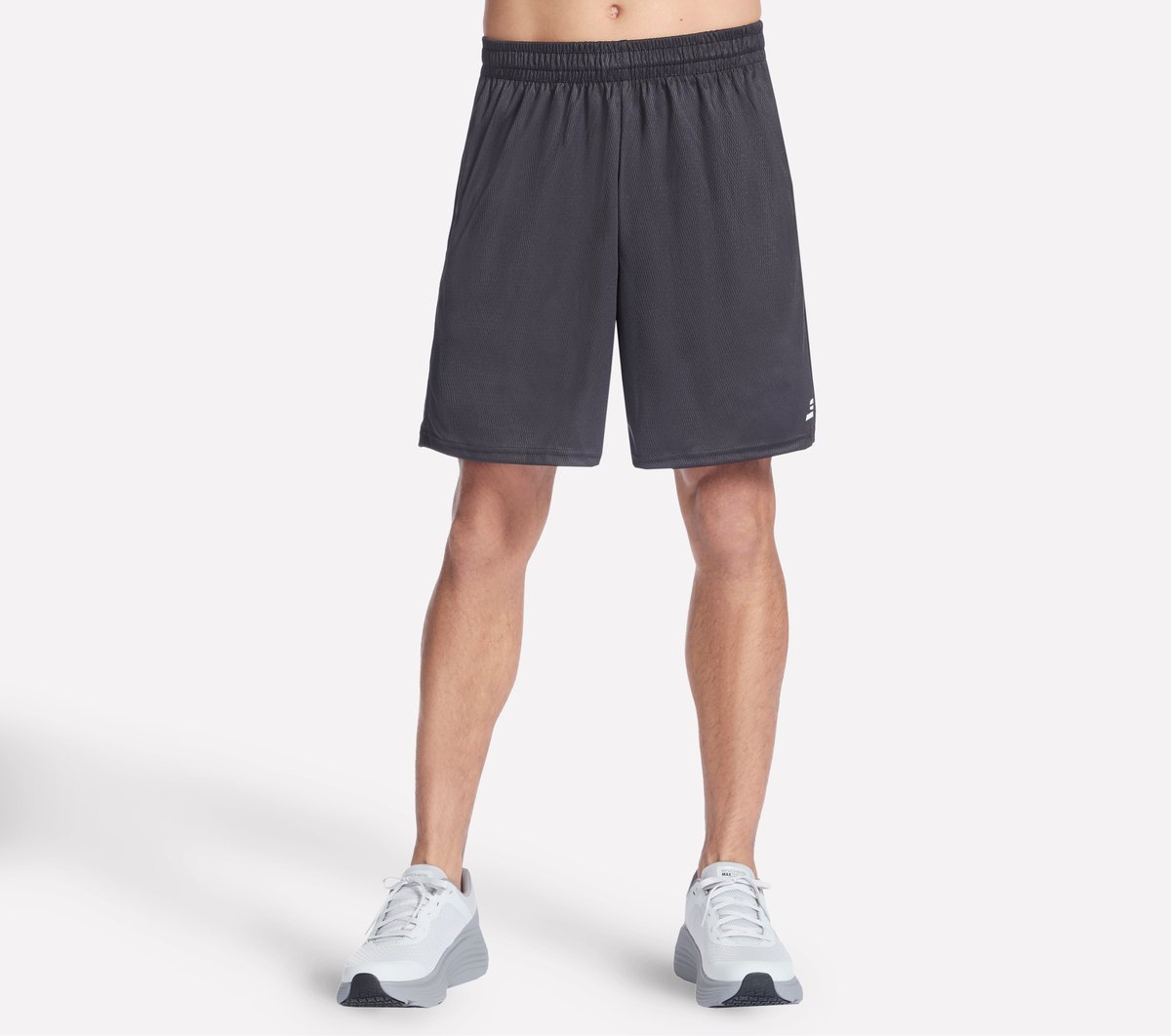 Move freely in sporty style wearing Skechers Defender 7 Inch Short. This lightweight athletic pair of shorts is made from a quick-drying performance mesh fabric and features an elasticized waistband with internal drawcord, on-seam hand pockets, and a Skechers Performance™ logo at left thigh.