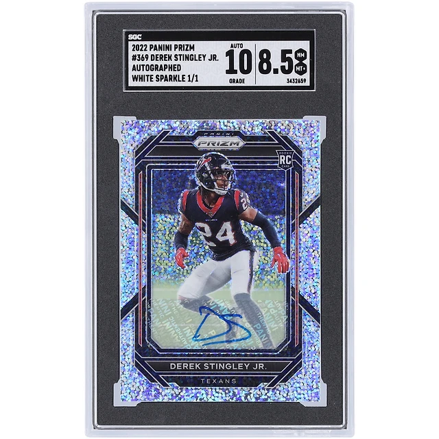 Derek Stingley Jr. Houston Texans Autographed 2022 Panini Prizm White Sparkle Prizm #369 #1/1 SGC Authenticated 8.5/10 Rookie Card
