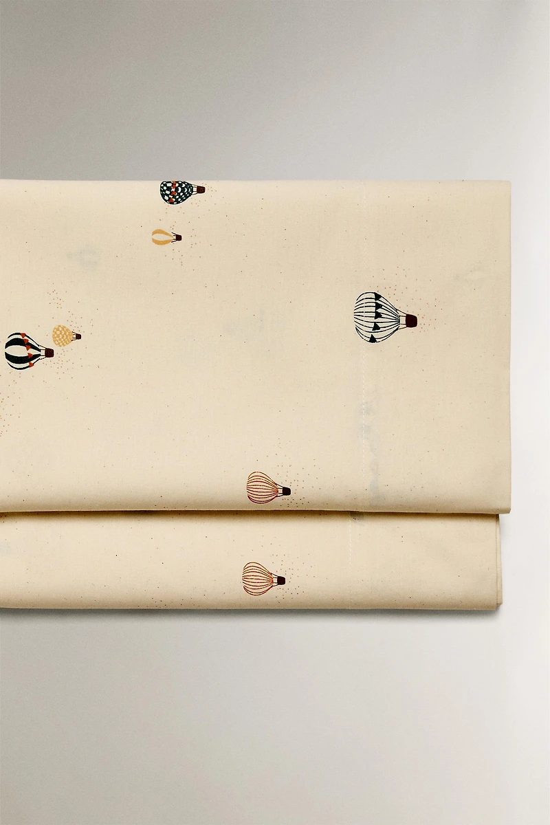 Drap de dessus pour enfant en coton 200 fils avec motif montgolfières.
