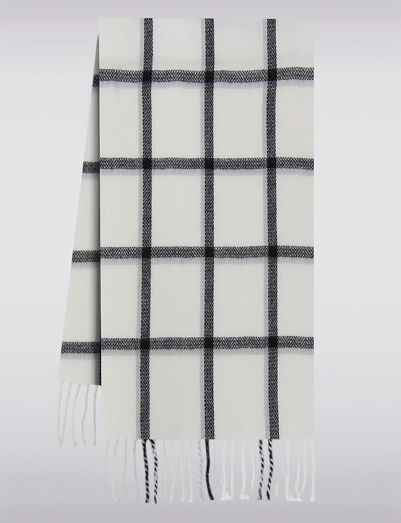 Écharpe Oblongue Légère à Carreaux Finition Douce avec Franges