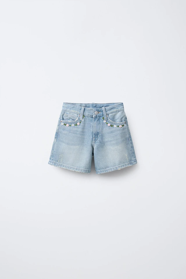 EMBROIDERED DENIM SHORTS