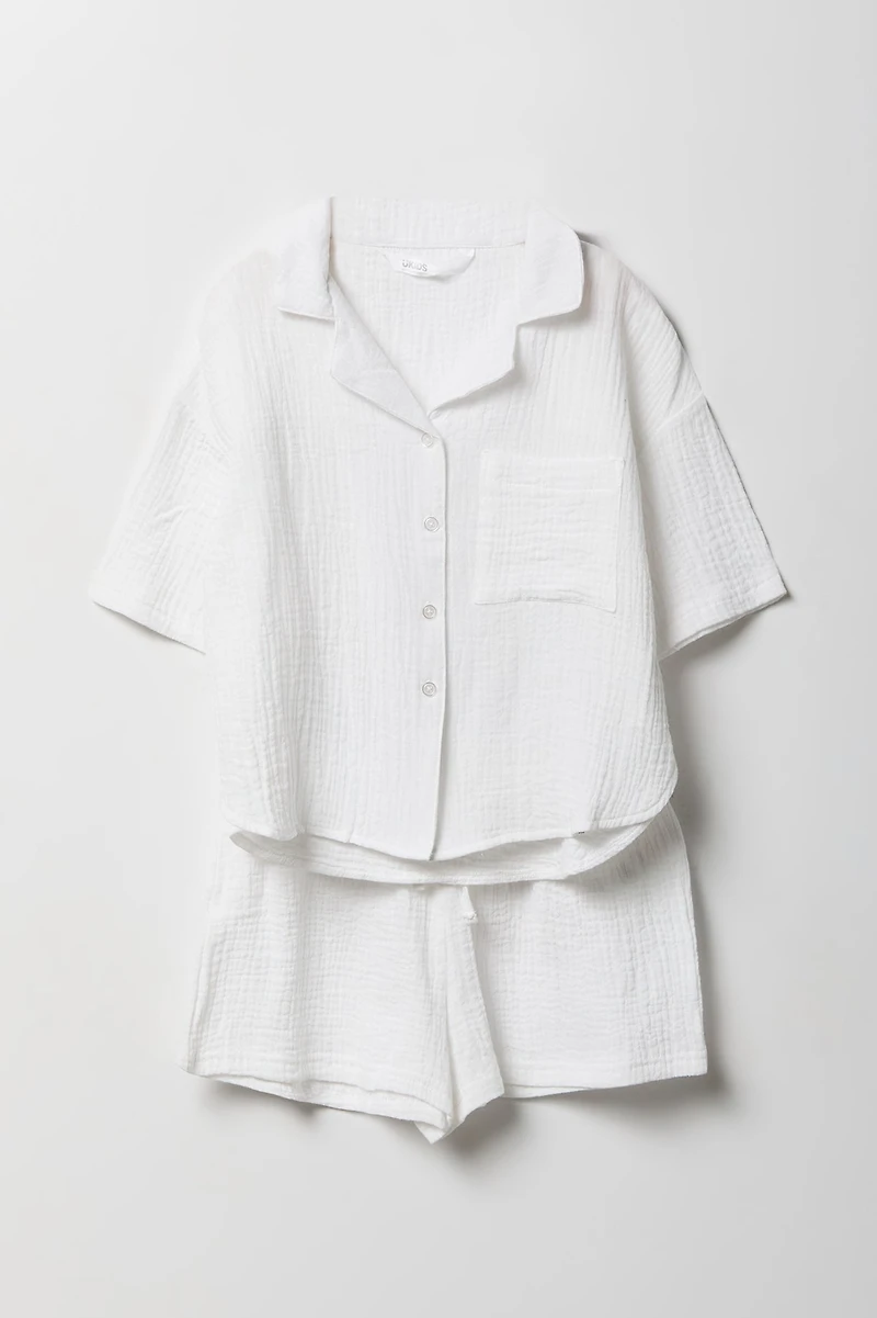 Ensemble avec haut boutonné en gaze et short pour fille