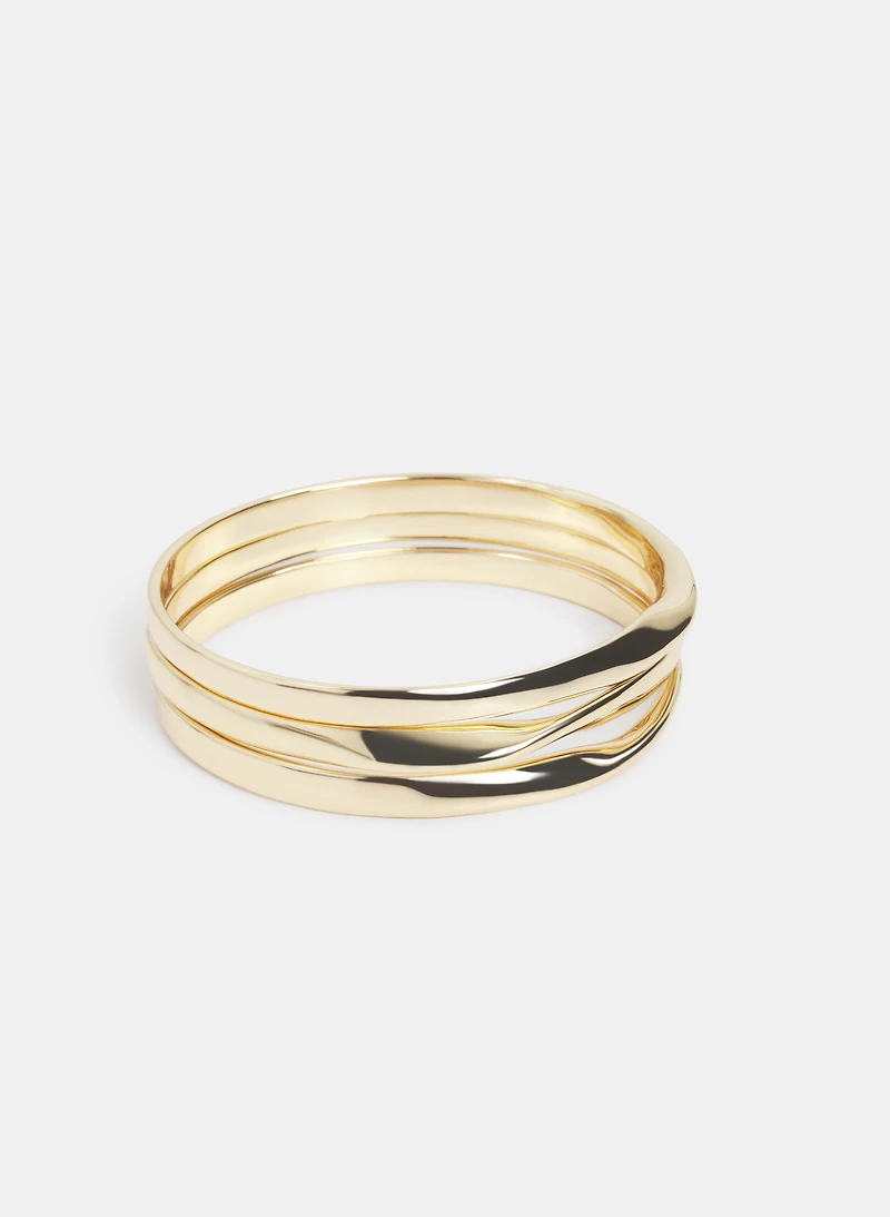 Envie d'ajouter un petit je ne sais quoi à votre tenue? Peaufinez-la en portant notre ensemble de bracelets joncs moderne. Ensemble de 3 bracelets Forme irrégulière Fini métallique Ne contient ni plomb, nickel ou cadmium