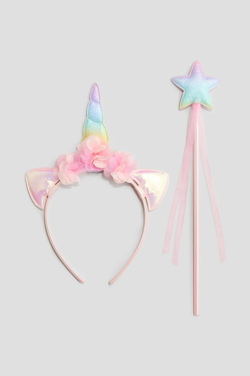 Ensemble de déguisement composé d'un passe et d'une baguette assortie.