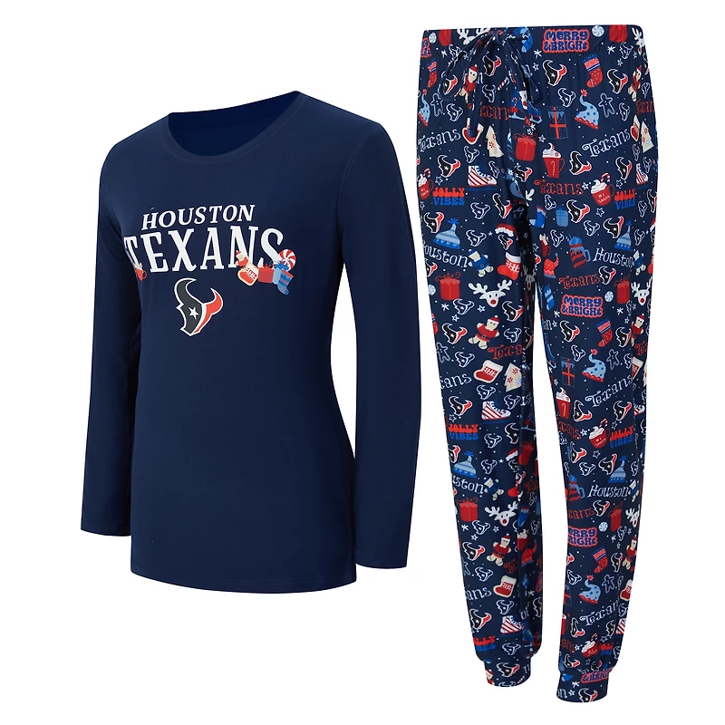 Ensemble de nuit pour femme Concepts Sport Navy Houston Texans Chesnut avec t-shirt à manches longues et pantalon