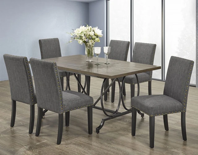 Ensemble de salle à manger traditionnel de style contemporain de 7 pièces Elizabella - Brun/Gris