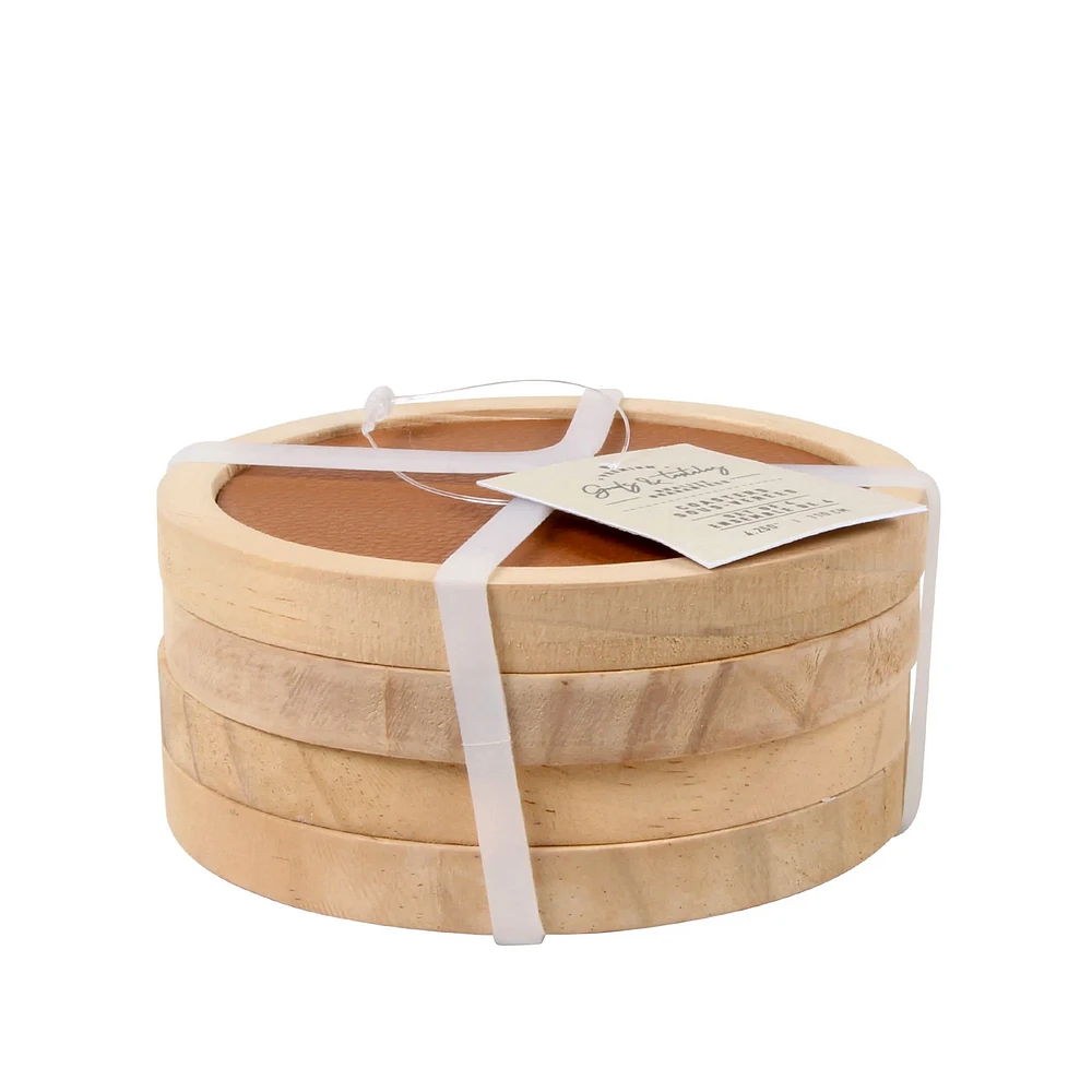 Parfait pour toutes les saisons, cet ensemble de sous-verres est composé d'un élégant cuir végétal et d'une base en pin durable. Ils ajoutent de la chaleur et une touche rustique à n'importe quel décor. Leur design simple et élégant se marie aussi bien avec un intérieur moderne qu'avec un style plus traditionnel. Parfaits pour protéger vos meubles des taches et des rayures, ils apporteront une touche de charme naturel à vos apéritifs et moments de détente. Ensemble de 4 sous-verres.