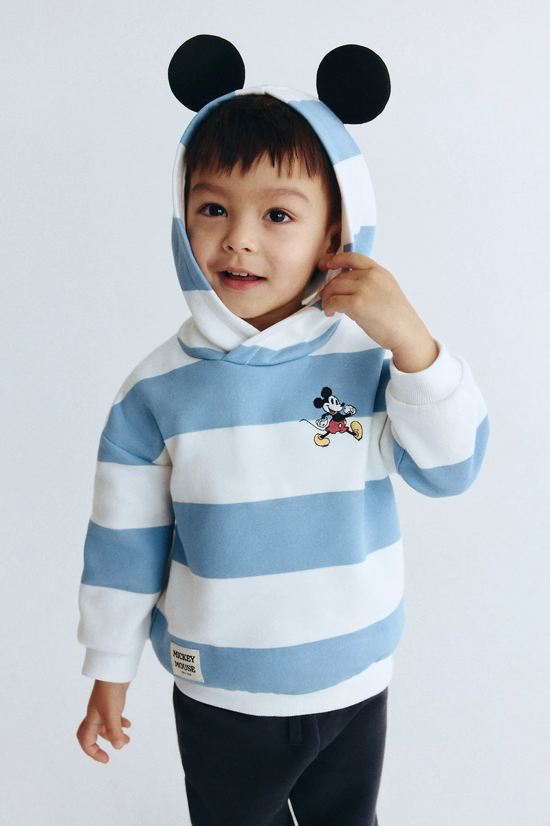 Ensemble en molleton à l'intérieur doux et brossé, composé d'un chandail à capuche et d'un pantalon de jogging. Chandail à capuche à effet croisé devant, doublée et agrémentée d'oreilles appliquées, emmanchures tombantes et petit motif brodé devant. Finition côtelée aux poignets et au bas. Pantalon de jogging avec élastique réglable à la taille et cordon de serrage décoratif dans la ceinture. Élastique habillé en bas de jambe.