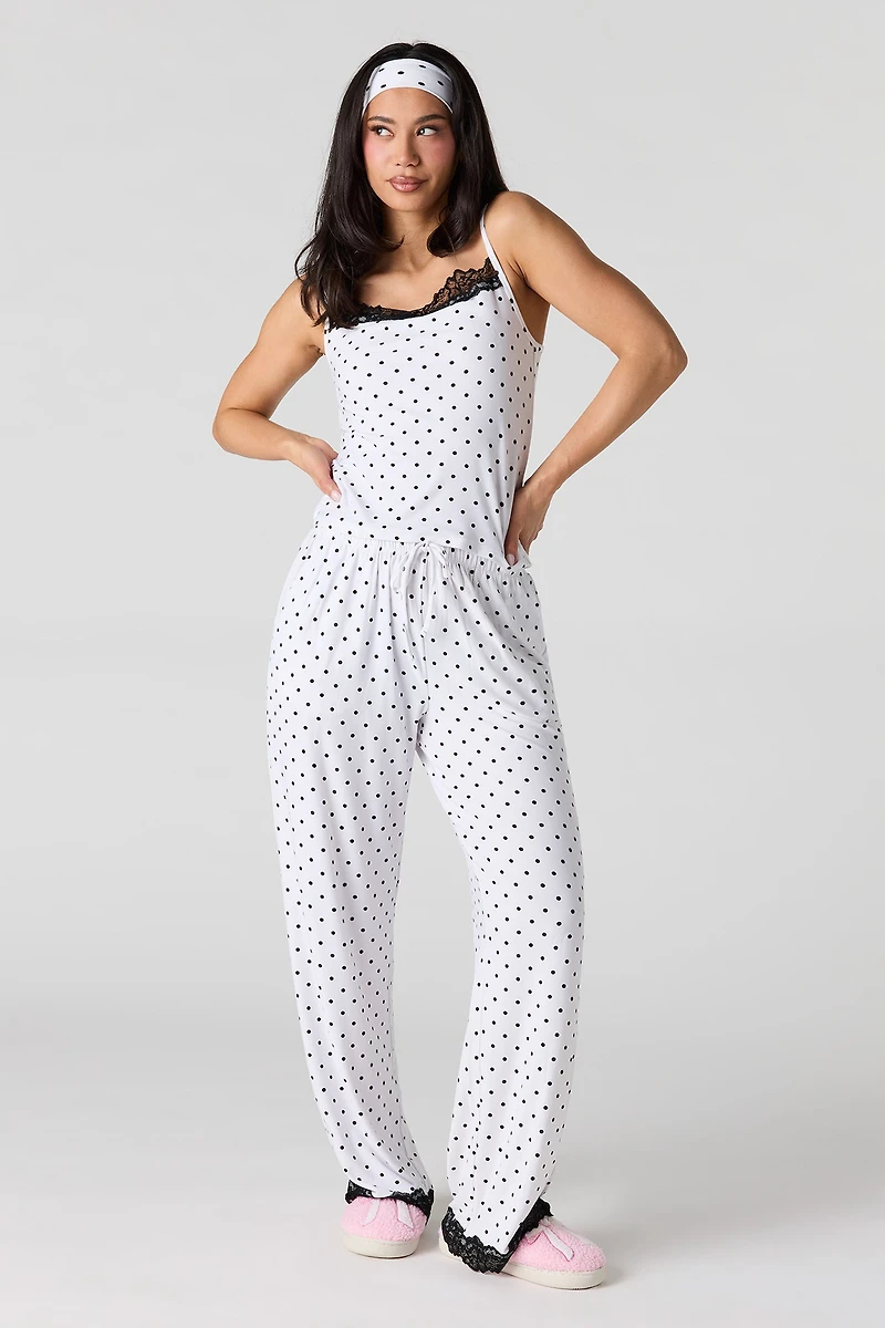 Ensemble pyjama avec débardeur imprimé en dentelle, bandeau et pantalon