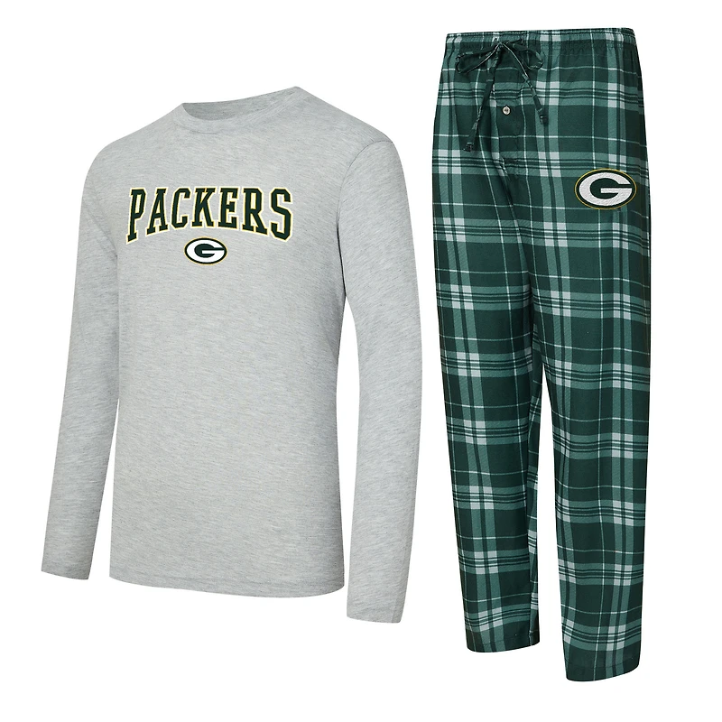 Ensemble t-shirt à manches longues et pantalon carreaux Green Bay Packers Regulate pour homme, coloris vert chiné/gris chiné