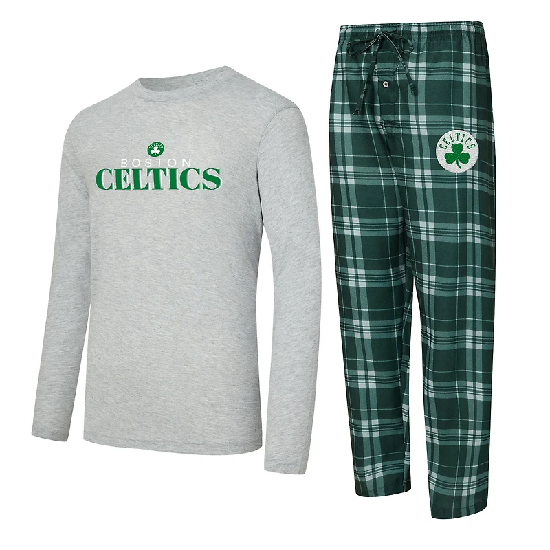 Ensemble t-shirt à manches longues et pantalon carreaux vert Boston Celtics de Concepts Sport pour homme