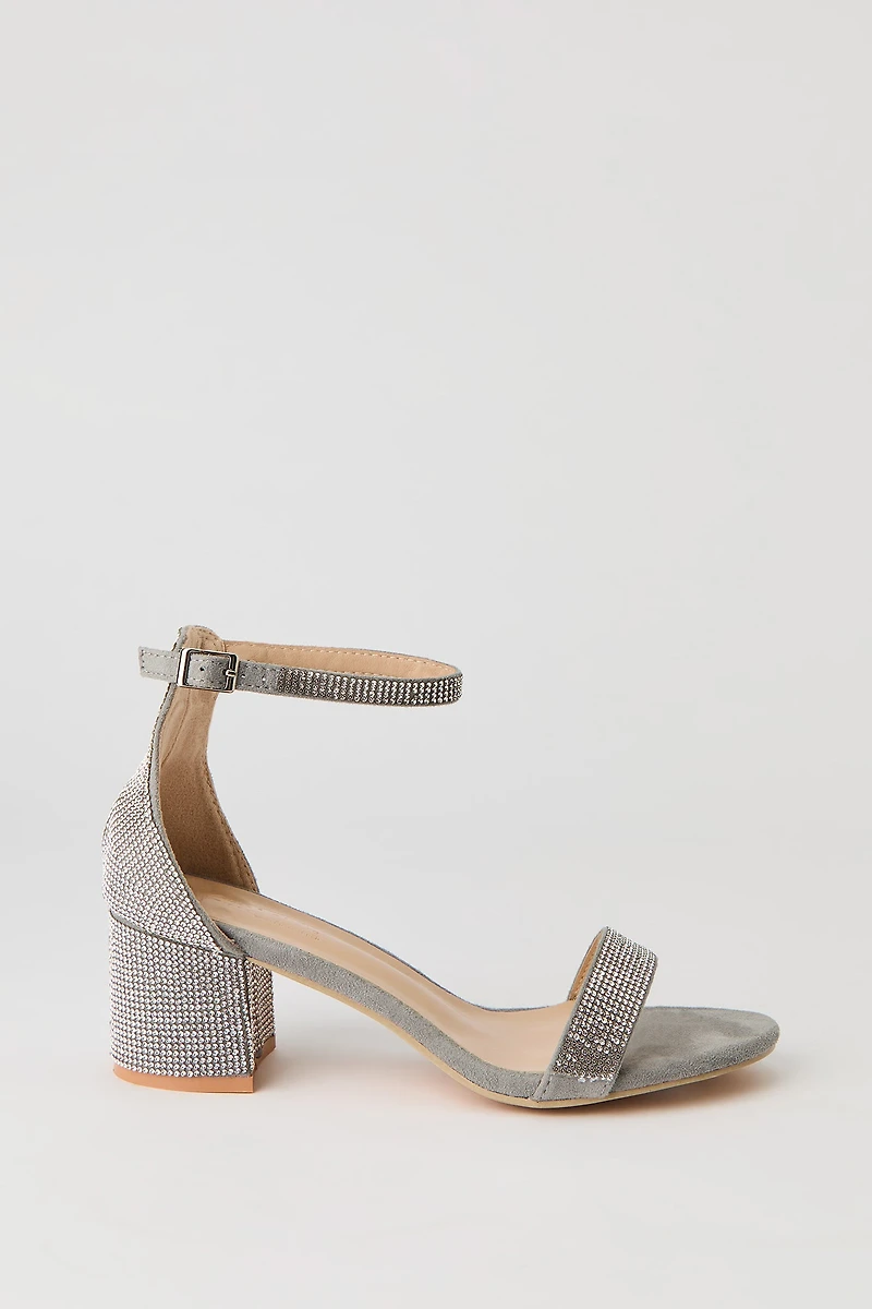 Escarpins à talons blocs avec bandes et pierres du Rhin
