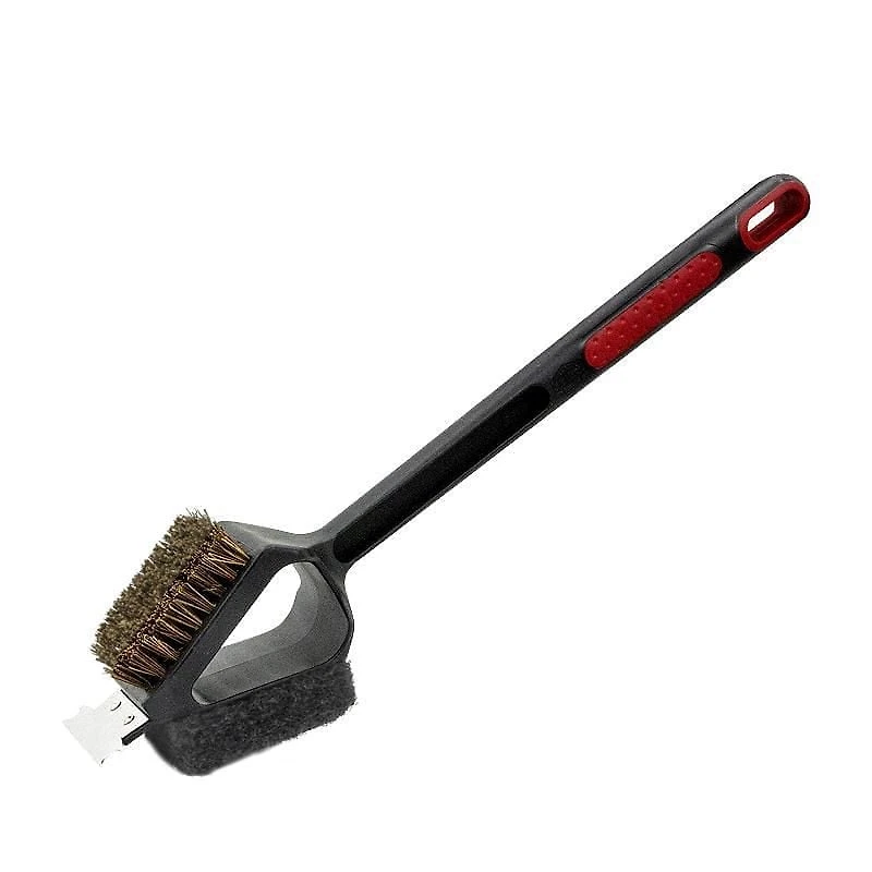 La brosse barbecue Expert Grill 2 côtés permet de doubler les options de nettoyage. Des poils de palmyre robustes ainsi qu’un tampon d’épuration robuste permettent un nettoyage de premier ordre. Contient une poignée de préhension pour une meilleure manipulation lors du nettoyage.