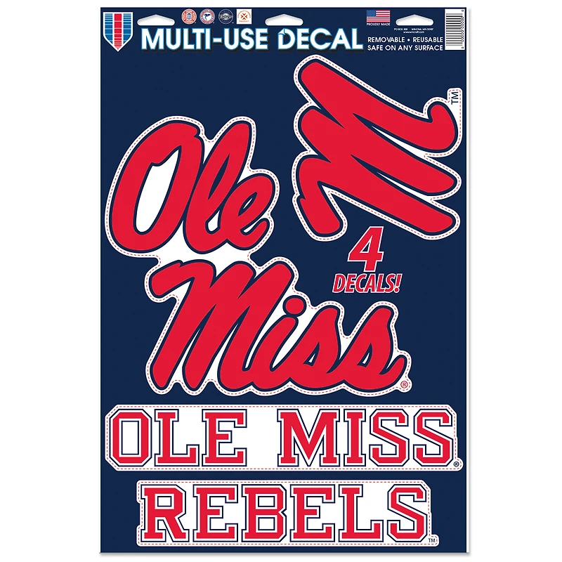 Feuille d'autocollants multi-usages WinCraft Ole Miss Rebels Primary 11'' x 17