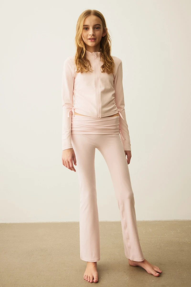 Flared yoga leggings in functional jersey. Folded, gathered waistband with drawstrings at sides.