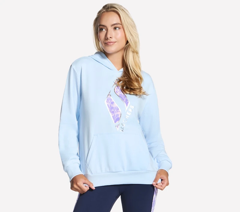 Stay cozy in fresh style with Skechers Floral Diamond Pullover Hoodie. This comfort sweatshirt is made from our breathable SKECH-SWEATS™ French Terry and features a lined hood, a front kangaroo pocket, and a metallic Skechers® Diamond graphic with floral print detail at the center chest.