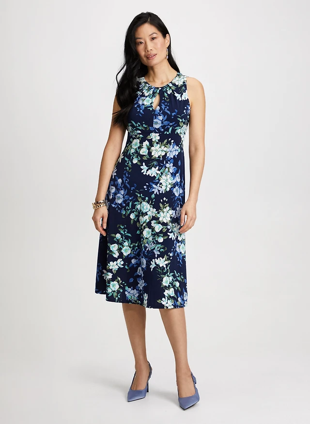 ROBE MIDI AJOURÉE À IMPRIMÉ FLORAL