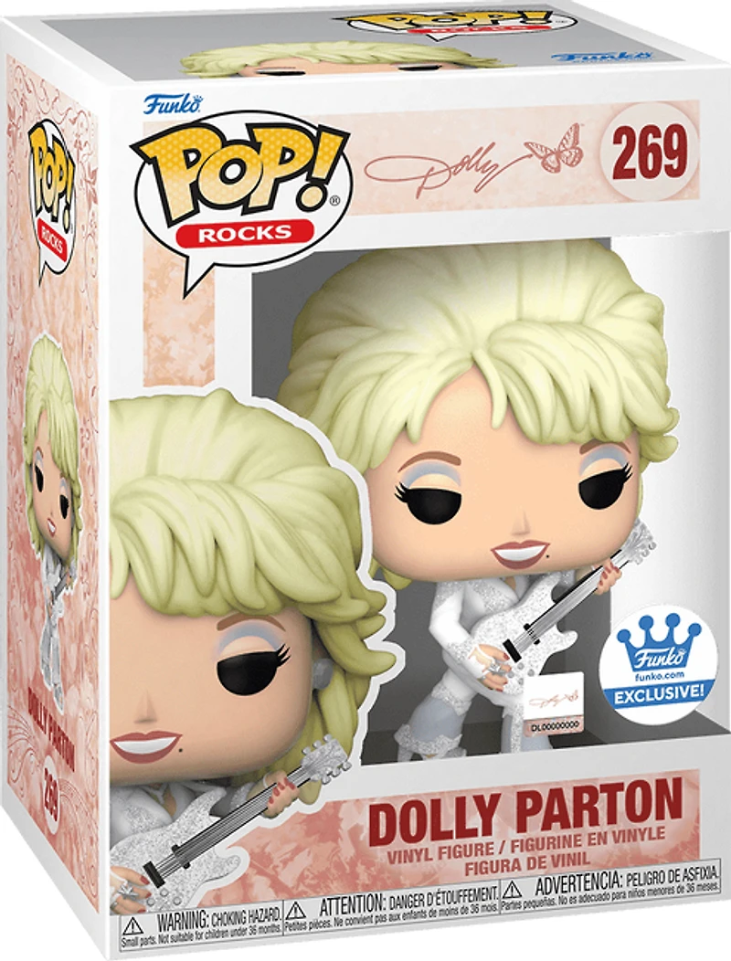 Type: Art Toys Brand: Funko Series: Pop! Vinyl , Pop! Rocks Production Status: Exclusive Exclusive To: Funko Shop Reference #: 269 Released: Mar 2023 Related Subjects: Dolly Parton