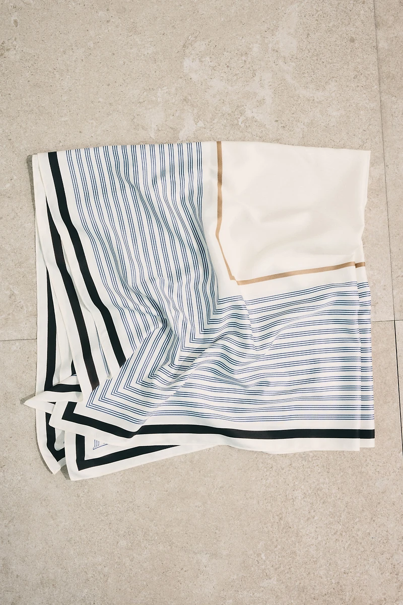 Grand foulard carré en tissu souple avec décor imprimé.