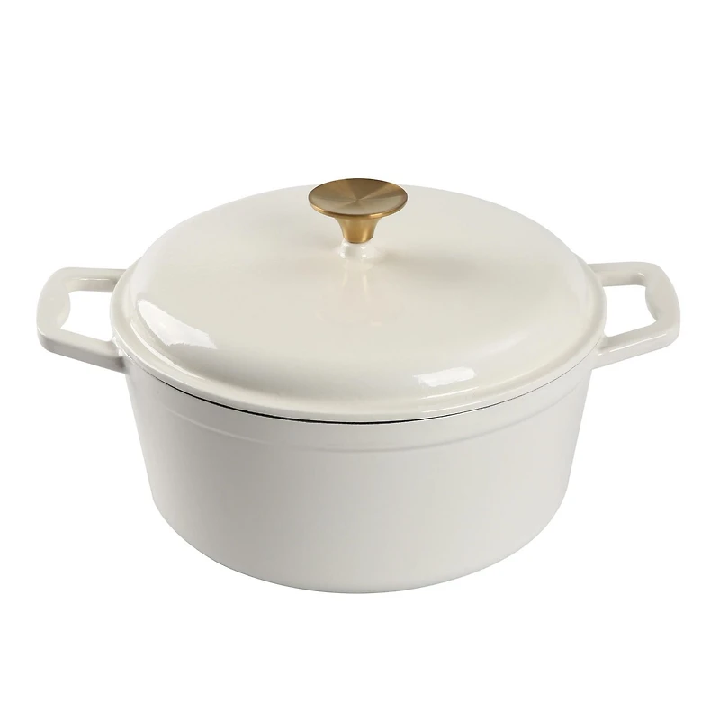 Découvrez la joie de cuisiner avec le four hollandais rond en fonte émaillée Mainstays de 4,75 litres. Cette marmite blanche de grande capacité recouverte d'émail est le choix parfait pour la cuisson lente et la pâtisserie. La fonte robuste assure une répartition homogène de la chaleur et une rétention supérieure, rehaussant les saveurs et préservant les nutriments. Doté d'un élégant bouton en laiton sur acier inoxydable, le couvercle garantit que l'humidité et la chaleur sont emprisonnées, tout en ajoutant une touche élégante à votre cuisine. Faites de ce faitout polyvalent votre incontournable pour les soupes, les ragoûts, les rôtis et le pain fraîchement sorti du four. Faites l'expérience de la durabilité, du style et de la praticité tout en un avec le four hollandais en fonte émaillée Mainstays. Lavage à la main seulement