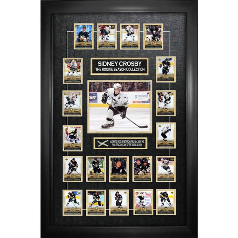 Frameworth Penguins de Pittsburgh : Photo encadrée de Sidney Crosby avec collage de cartes de hockey et morceau de filet de la saison 2005-2006