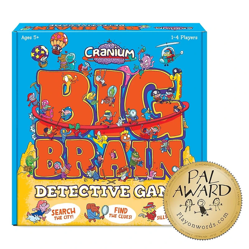 Bonjour les détectives! Bienvenue à Big Brain! Dans cet endroit hilarant, agir bizarrement est normal. Les mystères doivent être résolus. Travaillez ensemble et recherchez la carte, localiser des indices et clôturer tous les dossiers avant l'expiration du délai! Un gameplay coopératif rassemble les familles. Localisez les indices et résoudre le affaires. Jouer sur un plateau de jeu 800 pouces carrés et une carte de jeu joliment illustrée. Offre un plaisir visuel et des heures d'amusement aux enfants.