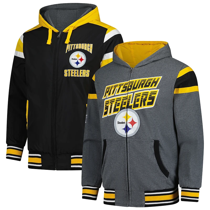 G-III Sports by Carl Banks pour homme Noir/Gris Pittsburgh Steelers Extreme Full Back Sweat à capuche réversible Full-Zip Jacket