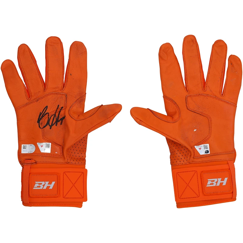 Gants de frappe Under Armour orange autographiés et utilisés en match par Bryce Harper (Phillies de Philadelphie) lors de la saison 2025 de la MLB - HH98516192-93