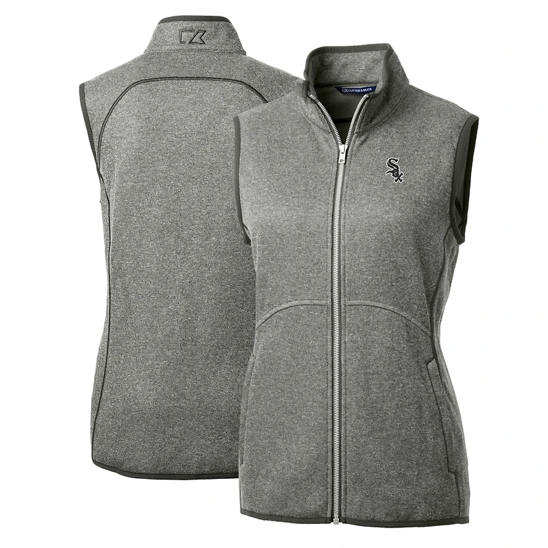Gilet en tricot zippé pour femme, couleur gris chiné, Cutter & Buck, des Chicago White Sox