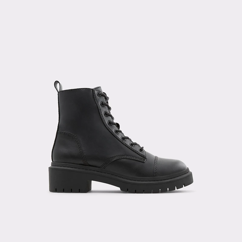 Du cuir poli couronne un bout d'orteil recouvert alors que des lacets à anneaux métalliques montent le long de la tige, et une semelle à picots offre une levée stable pour les flaques d'eau, les rues glissantes de pluie et les détours rapides en ville. Associez avec du denim coupé pour les courses à café, ou lacez sur des collants et une robe à bretelles lorsque les marchés nocturnes appellent.