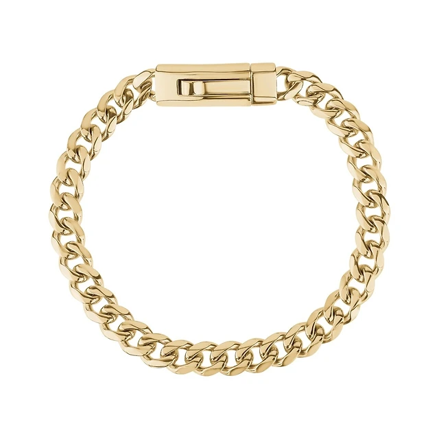 Gold Tone Stainless Steel 7mm Cuban Bracelet - 8.5