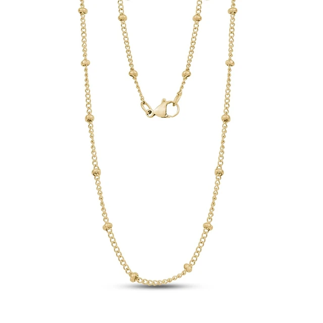 Gold Tone Stainless Steel Curb Chain with Beads - 18