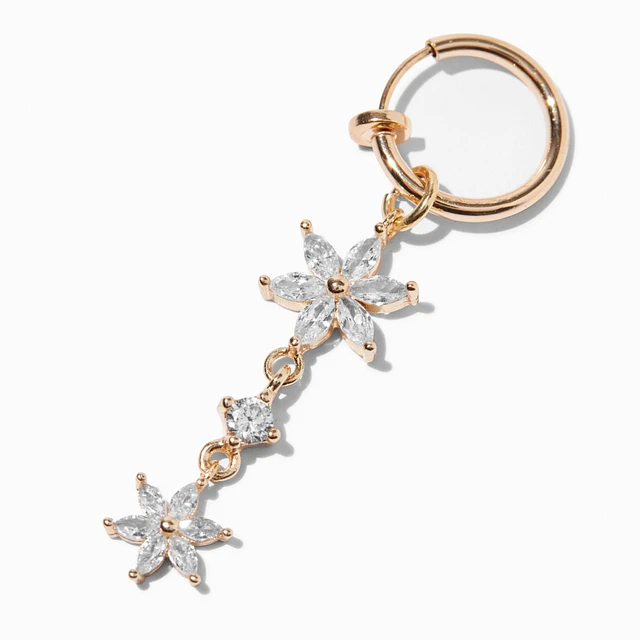 Gold-tone Stainless Steel Flower Drop Clip-On Faux Belly Bar