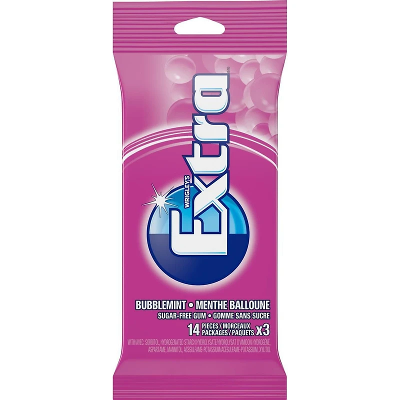 Gomme à mâcher Extra Menthe balloune sans sucre, 14 palettes, emballage de 3